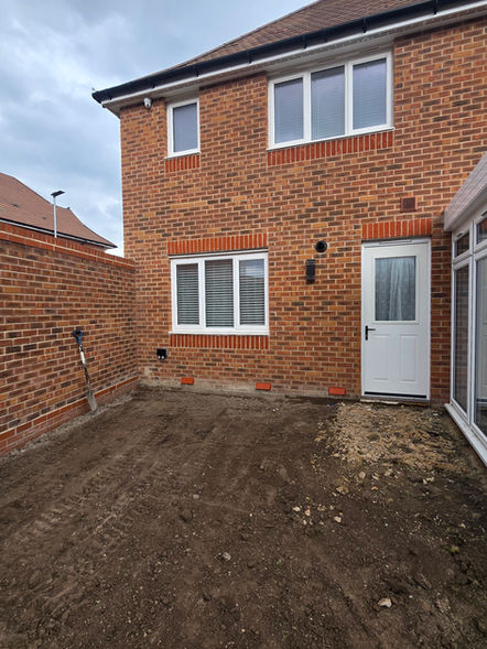 The Brief..... Remove existing new build lawn and new build basic slabs and create a contemporary easy maintenance hard landscaped beautiful garden outdoor space. Consisted of large format porcelain tiles and artificial grass with small bed for decorative tree in pot on decorative gravel. Electric cabling installed for extra sockets and later addition of alundum pergola.